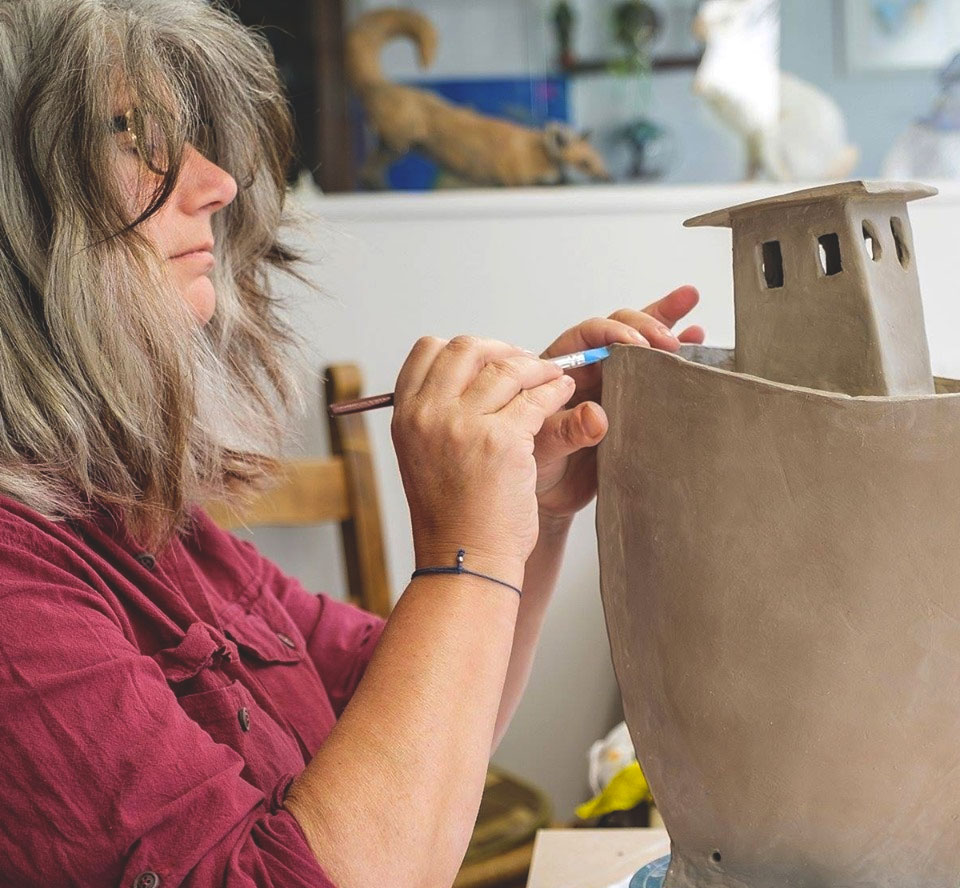 While Yasmin is better known locally as a professional photographer she has now discovered a new passion- clay. Inspired by the Channel Islands, and especially Guernsey she makes whimsical sculptures that are sometimes humorous and sometimes just plain weird.